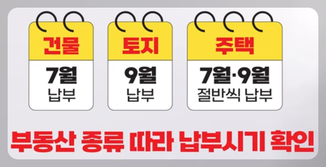 - 재산세는 부동산 종류에 때라 7월과 9월에 납부하게 됩니다.