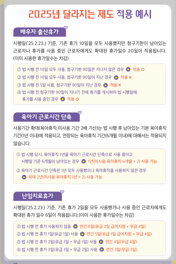 출산ㆍ육아, 2025년 달라지는 제도 적용 예시.