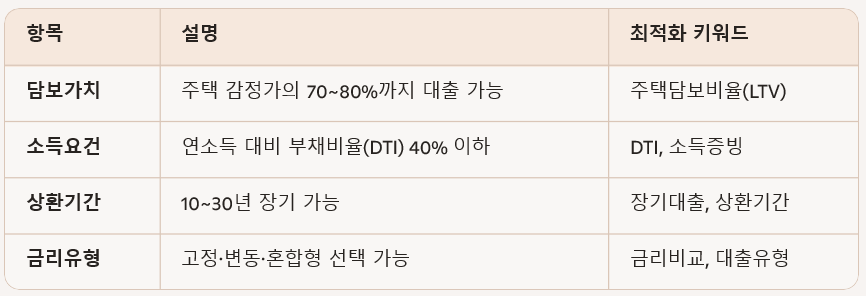 | 상환기간 | 10~30년 장기 가능 | 장기대출, 상환기간 |