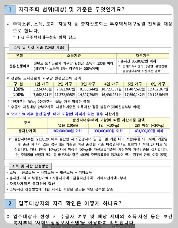 천 원 주택 자격조회 범위(대상) 및 기준.