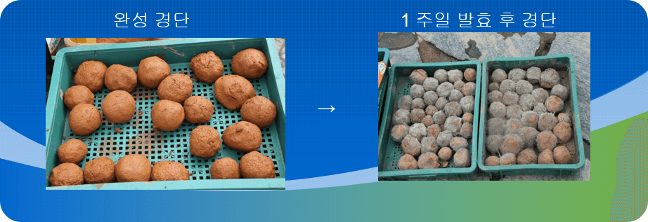 (1) 이엠 흙 공의 효과 EM에 의한 흙 공의 효과는 광합성균을 핵으로 하는 복합 미생물 군이 상승적으로 기능함으로써 환경오염원을 유용 발효시켜 환경정화원으로 바꾸며, 동시에 EM의 움직임과 EM이 만들어 내는 효소, 항산화물질에 의해 하천과 바다의 자정 작용을 생태계가 다양하게 활성화시키는 것이다. 쌀뜨물을 EM(유용미생물)으로 발효시키면서 쌀뜨물에 있는 고분자의 탄수화물 (전분), 단백질, 지방 등이 유용미생물이 생성하는 여러 가지 효소 Amylase, Protease, Lipase 등에 의하여 저분자의 아미노산, 당류, 유기산, 항산화물질로 전환되며 발효 분해계의 유용한 미생물이 증가하게 되어 자연계의 생물(미생물)과 연동하여 오염물질을 분해시키며 유기산과 항산화 물질이 악취를 제어하고 비이온화 작용으로 훌륭한 정화제로서 기능을 하게 되는 것입니다. (2) 이엠 흙 공 투척 후 환경이 변화. EM은 유산균, 효모, 광합성균을 주체로 한 복합균으로 유산균, 효모는 혐기로 되면 발효 작용을 하여 유기물(오니)을 가용화(소화)시킨다. 가용화된 물질은 저분자화 되어 탄산가스, 물과 함께 분자 수준에서 자연계로 되돌아간다. 효모, 유산균과 공존하고 있는 광합성균은 각종 환원물질 및 가용화 된 오니성분을 이용하여 키논류, 이시노 톨류 등의 항산화물질오 생성한다. 어니의 저분자화를 하고 있던 미생물은 광합성균에 의해 생성된 항산화물질이 생식환경에 많이 있기 때문에 균체의 자기 소멸을 촉진한다. 환경이 정화됨에 따라 가용화된 오니를 직접 이용할 수 있는 생물도 나타나고, 생물이 다양해져 자연계의 먹이연쇄가 정상적으로 기능을 하게 된다. (3) 수질 정화 사례-창고천. 2003년도부터 EM을 활용하여 수질정화 운동을 전개한 결과 생활하수의 유입으로 악화되었던 수질이 1등급으로 회복되었으며 백화현상과 해초의 수확량이 증가하고 있다.