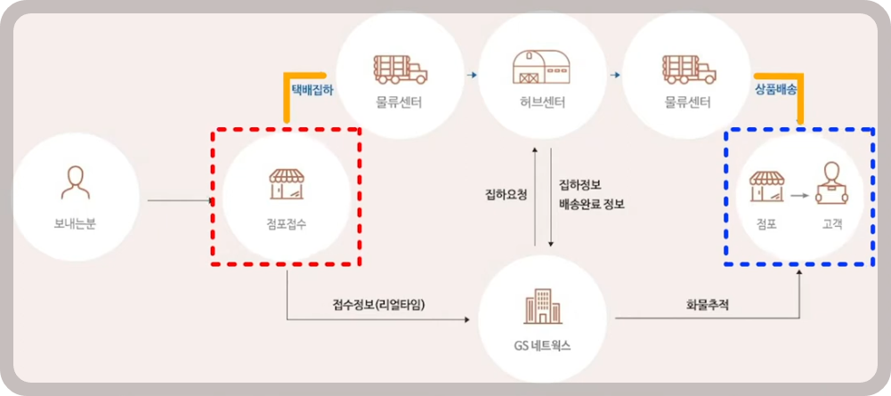 ⯄ GS반값 택배는 편의점에서 접수한 뒤 수취인이 거주하는 편의점으로 물품이 배송되어 수취인이 찾아가