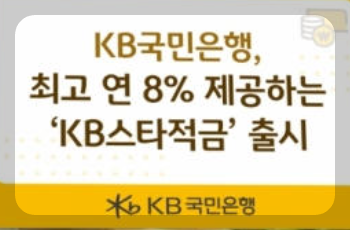 KB스타적금은 최고 연 8% 제공으로 비대면 전용 신상품으로 판매되는 것입니다. 신규상품으로 한