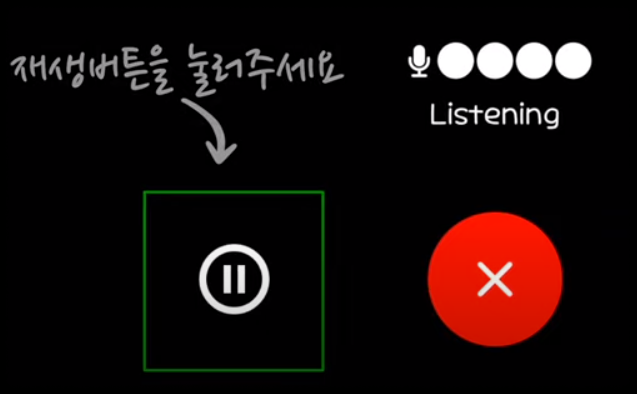 ⑰ 아래 화면은 대화를 멈추는 화면입니다. 답변이 끝나면 적색 X버튼눌러서 끝내면 됩니다.
