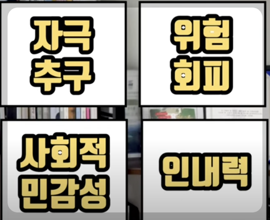 - 기질은 4가지의 하위영역으로 나누어지고 있습니다.