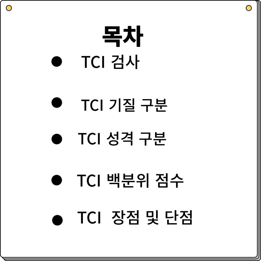 - TCI검사는 기질성격검사로 나와 상대방의 기질과 성격에 대해 알아볼 수 있는 검사입니다.