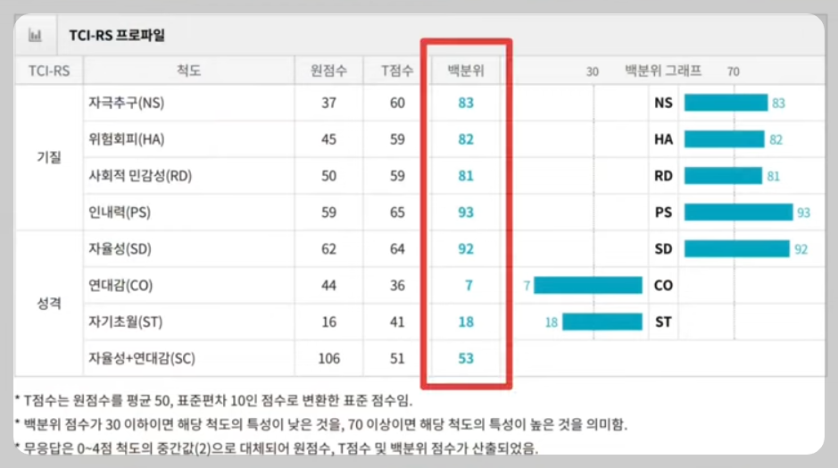 - TCI는 백분위점수를 가지고 있습니다. 점수를 기준으로 High - Medium - Low로 나뉘고 있습니다.